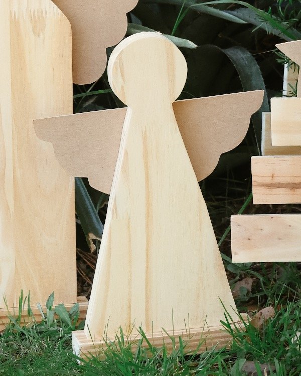 Angelito en madera de pino y mdf. Altura total 31cm. Precio por unidad.