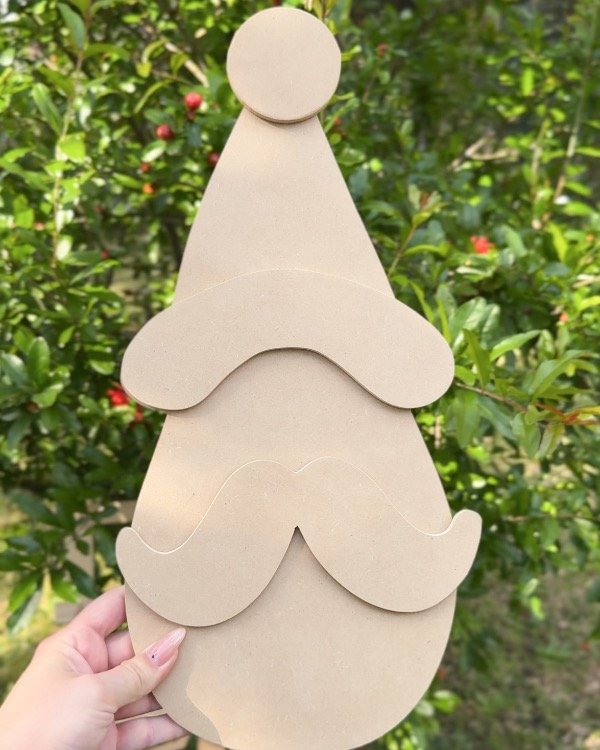 Figura de Papá Noel en mdf de 5mm. Medida total: 45x21cm. Se envían las partes despegadas para que sea más fácil de pintar.