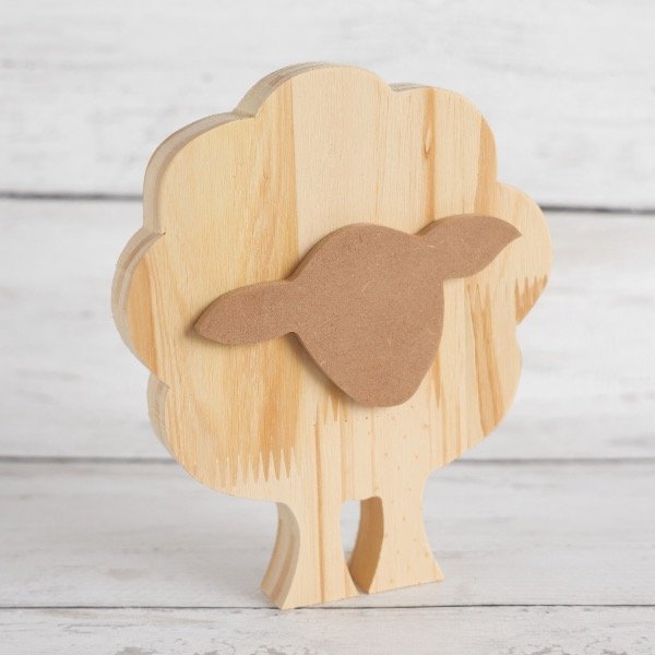 OVEJITA EN MADERA DE PINO 18,5cmx15,5cm con detalle de carita en mdf de 5mm.