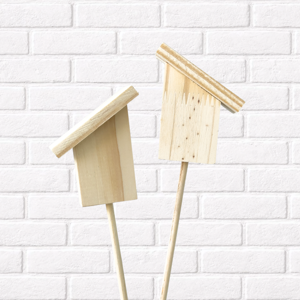 Tutor casita de pino. Largo total aproximado 32cm. Casita aprox de 8x9,5cm.